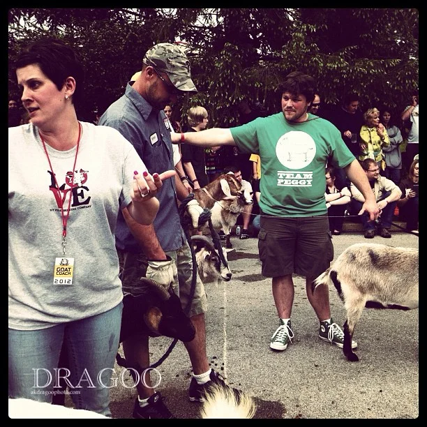 Bitchy lady at the wart of leash gate. She then blamed the kid on the sideline with popcorn for her loss. (Taken with Instagram at Slyfox Goat Races 2012)