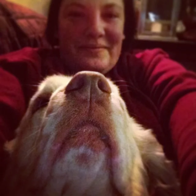Jan 10 Written By amy dragoo Selfie with Toonie. If only my arms were longer to capture her upside down in my lap. #livingwithclumbers livingwithclumbers amy dragoo